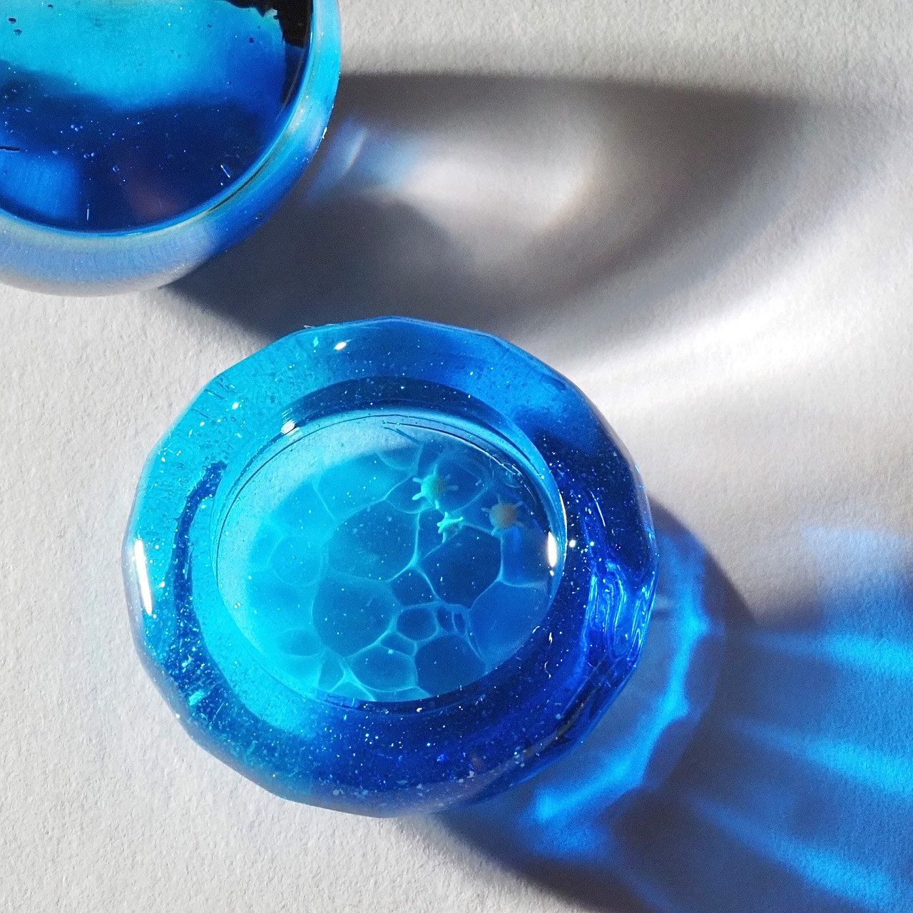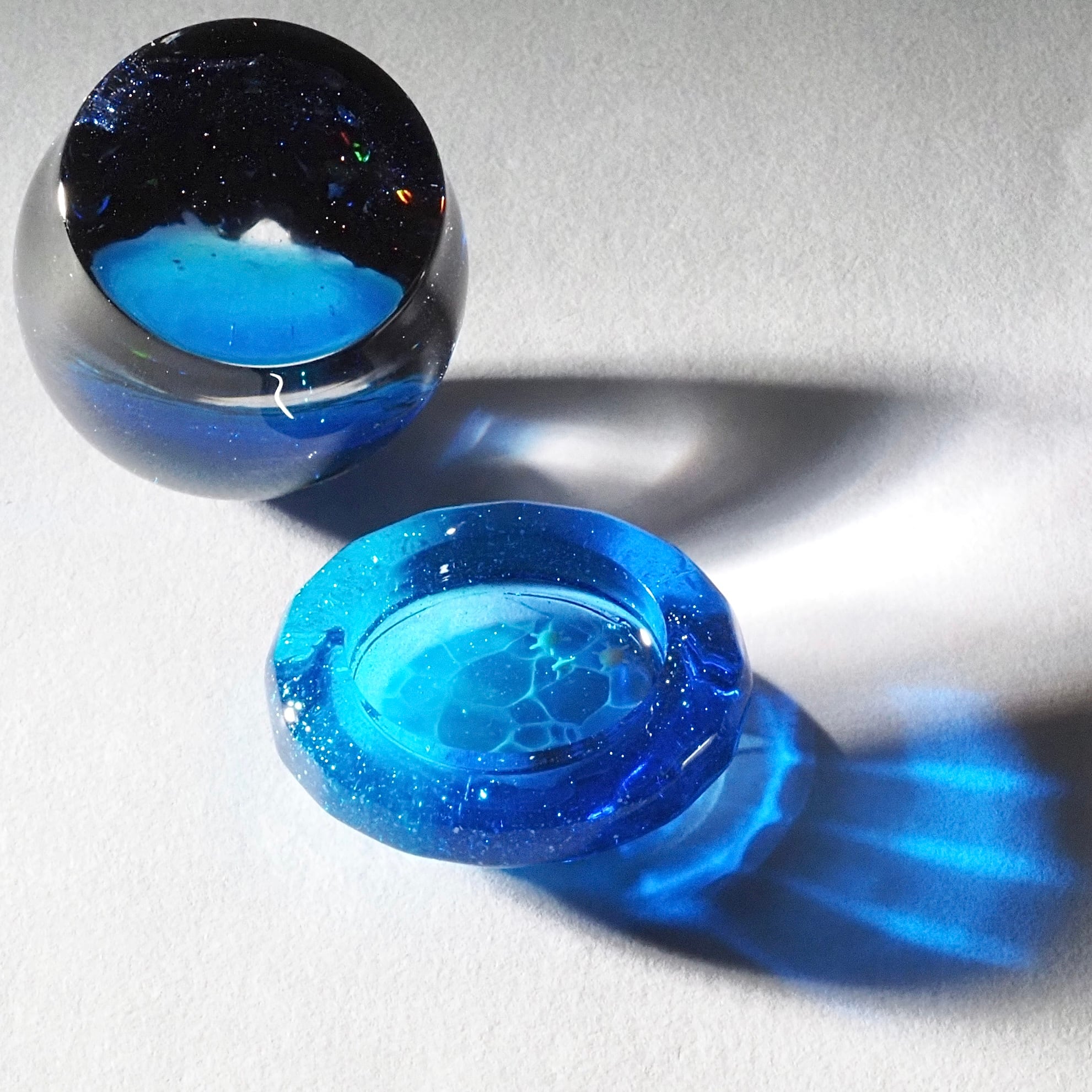 青の洞窟を台座に乗せることで、青がさらに深まり、透明感の中に奥行きが生まれます。