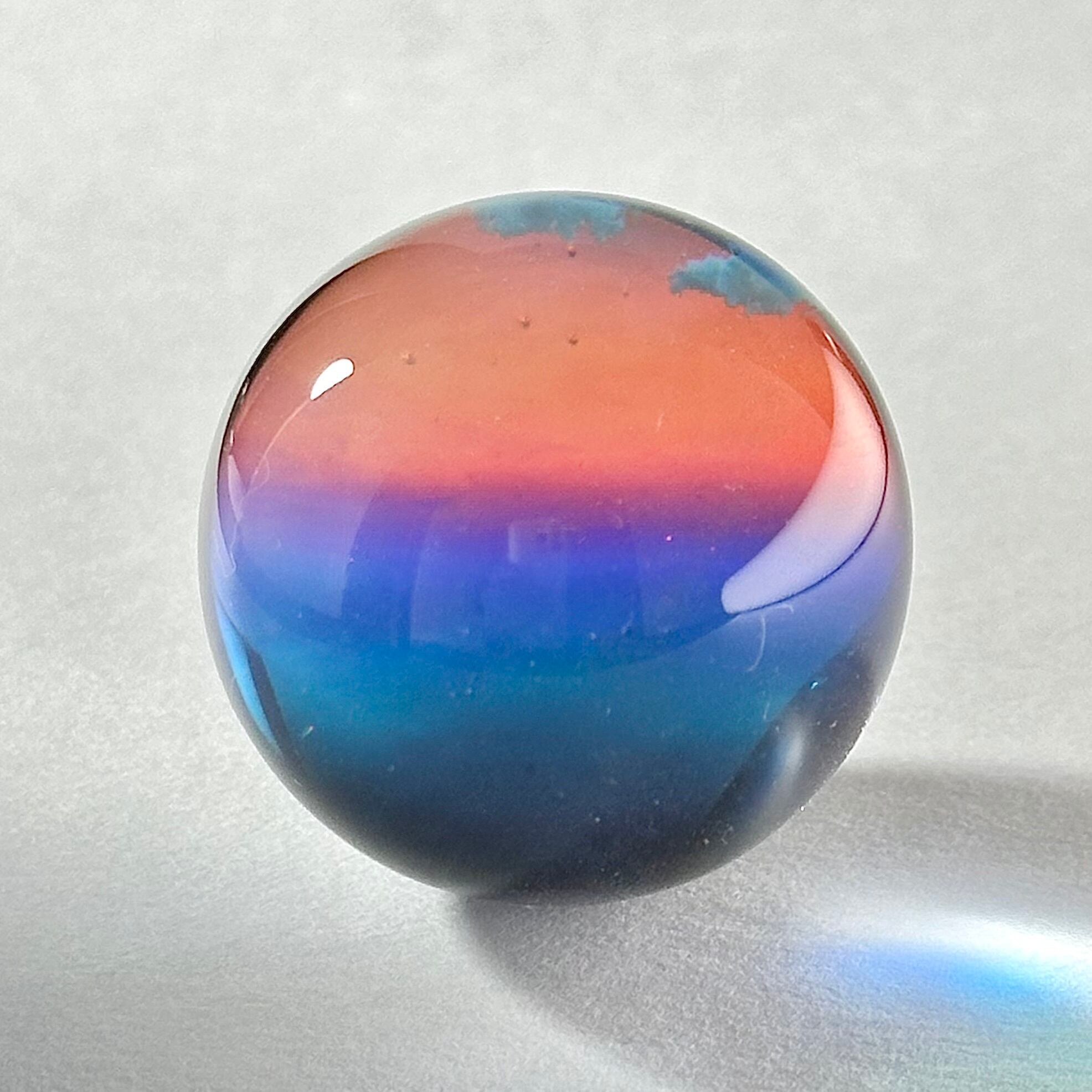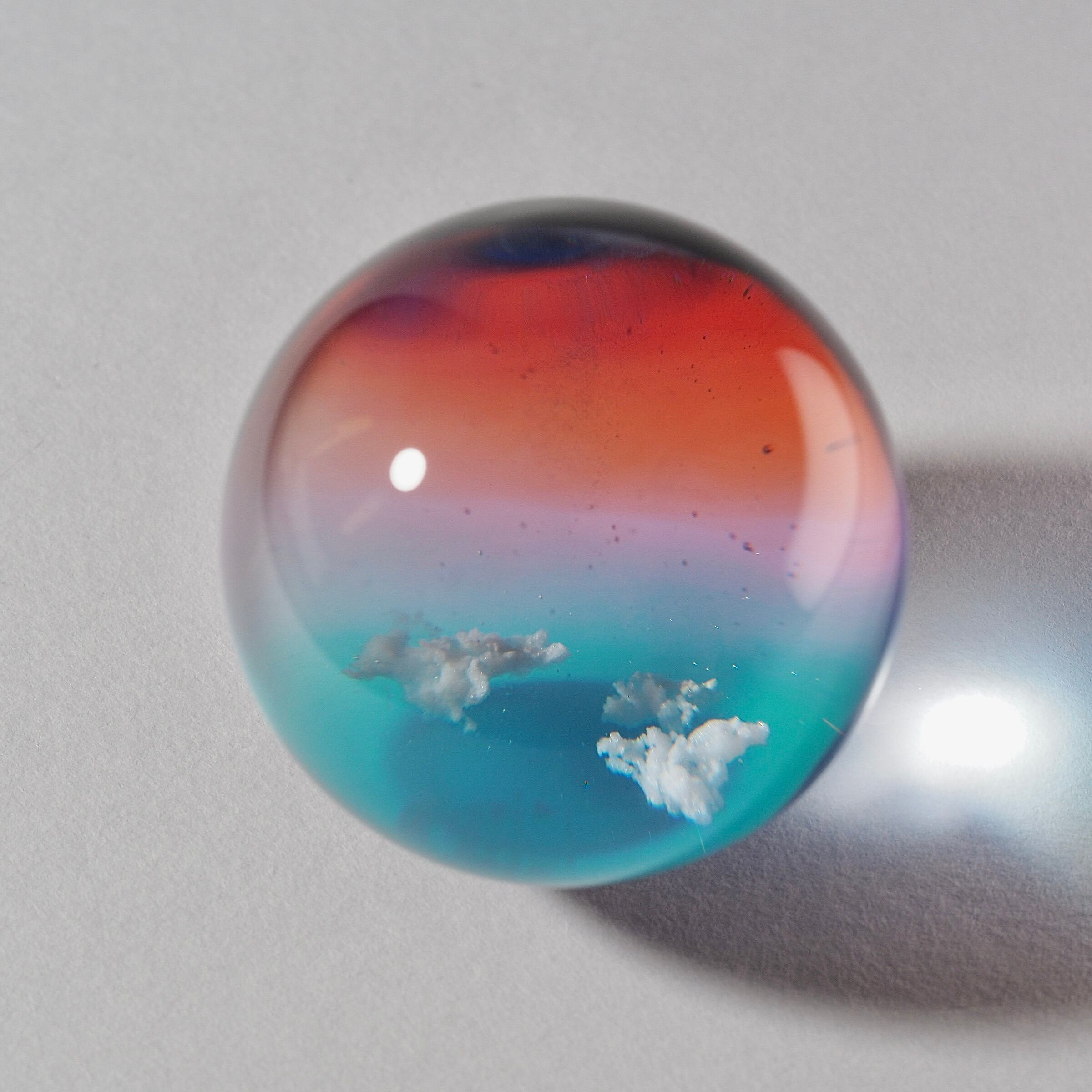 一つの球体に、二つの異なる空を閉じ込めた幻想的な作品です。