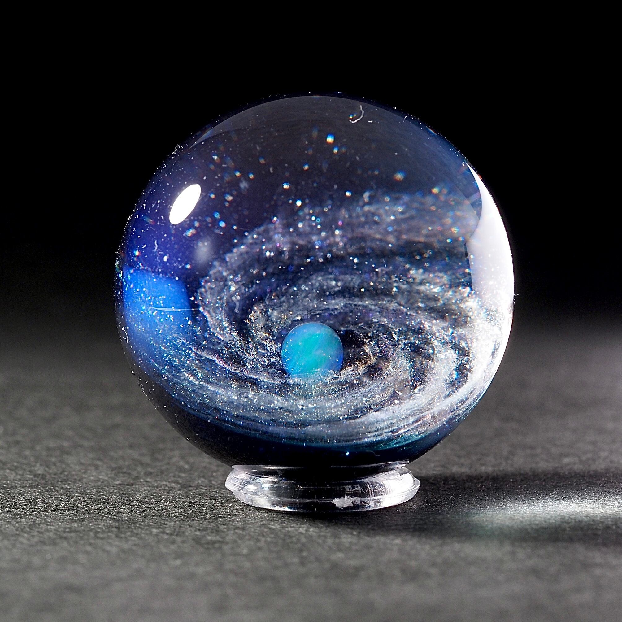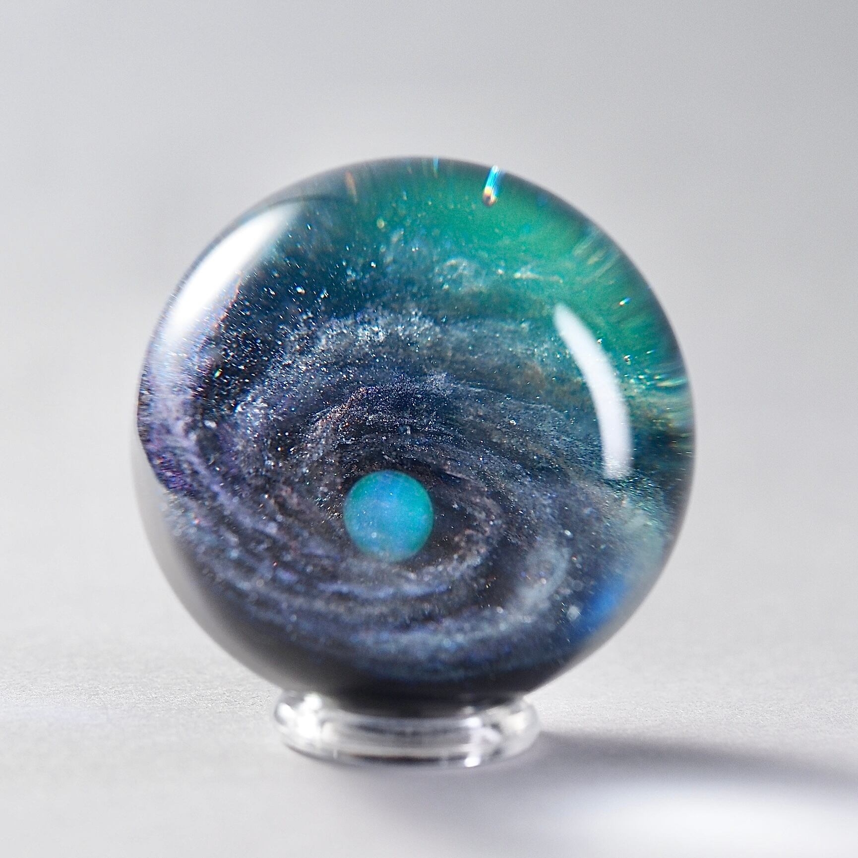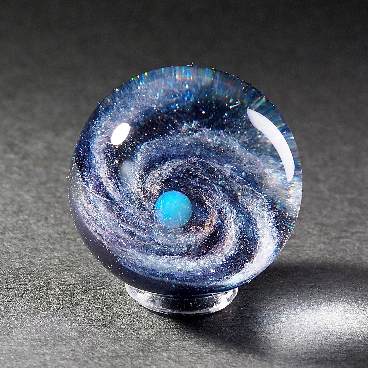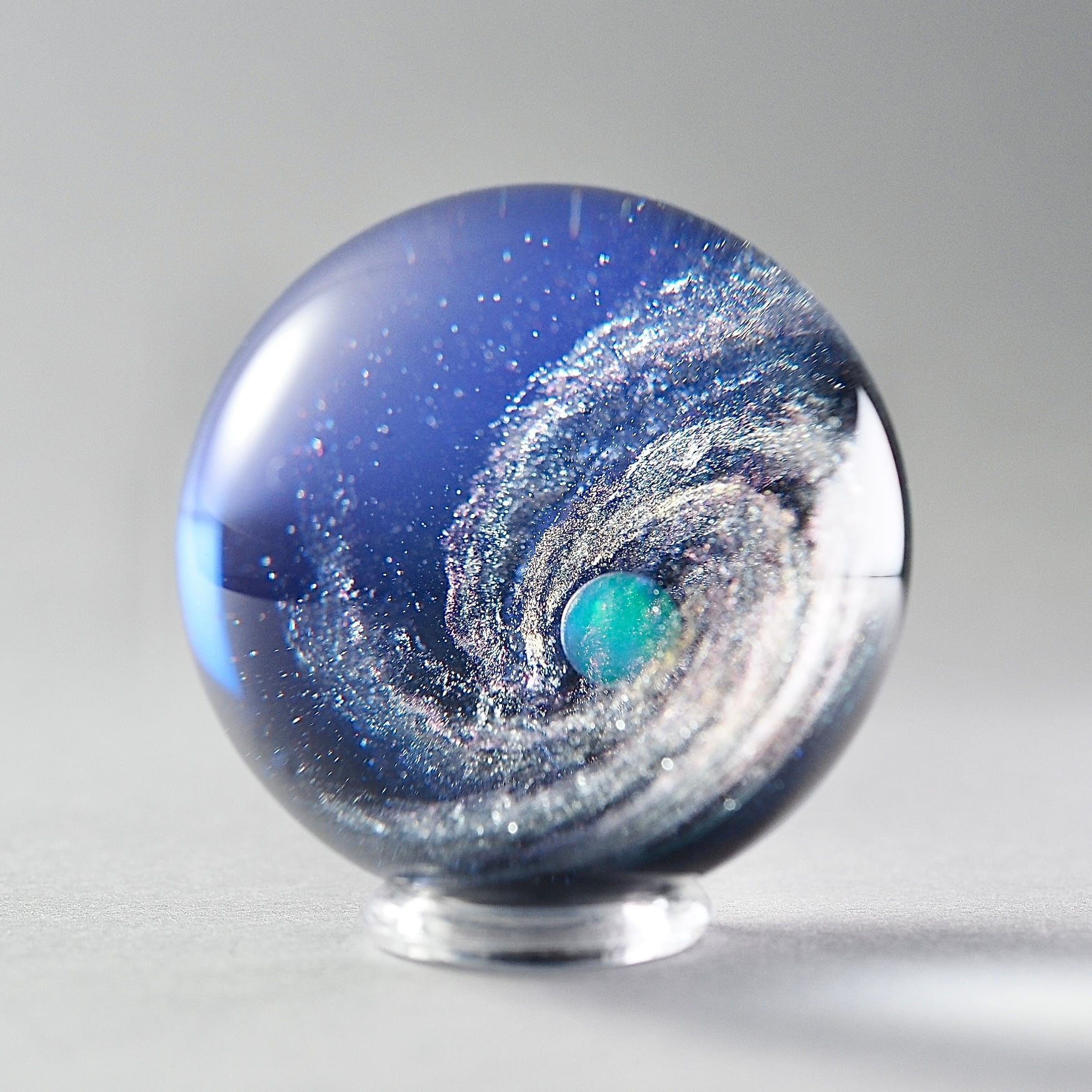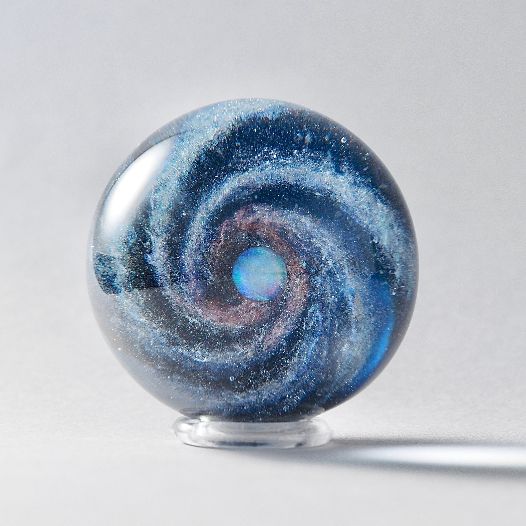直径3cmの透明なレジン球に閉じ込めたのは、私たちの故郷・天の川銀河。