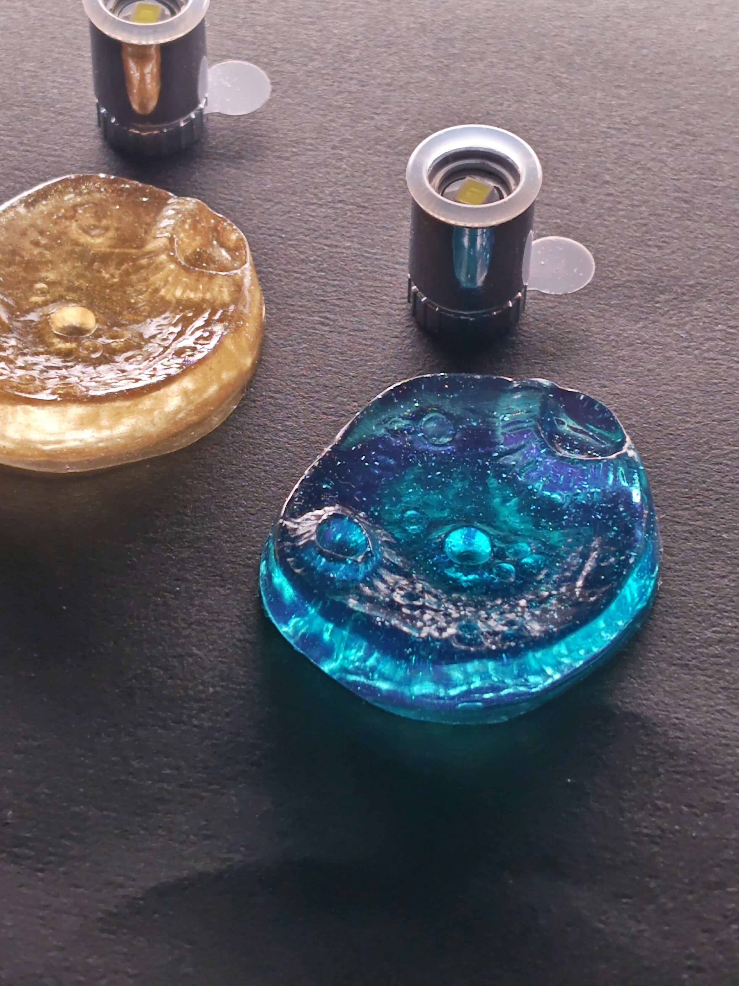 天然石の個体差やレジンの気泡なども含め、唯一無二の風合いとしてお楽しみください。
