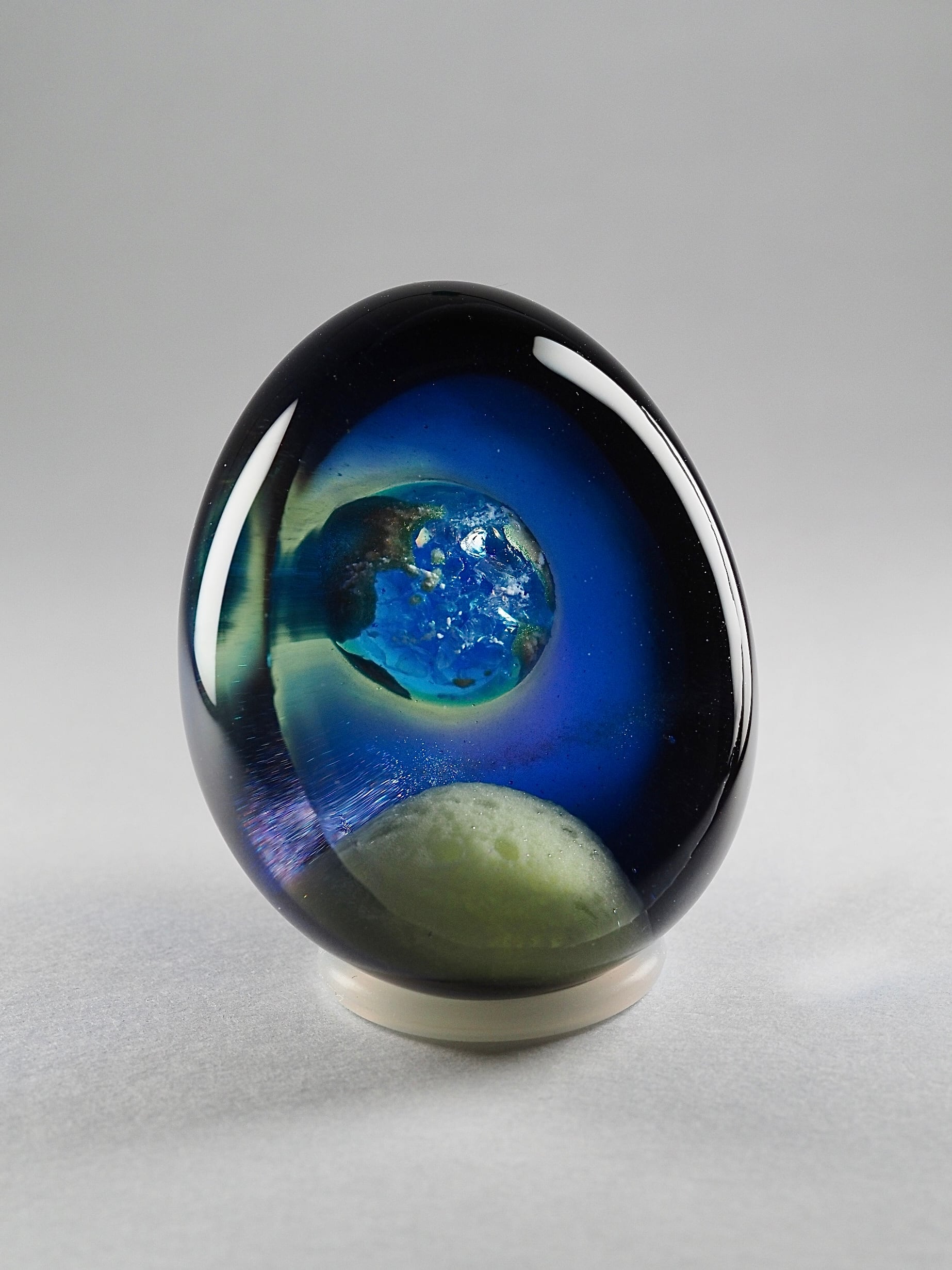 その静けさと輝きを、透明な球体のなかにそっと閉じ込めました。
